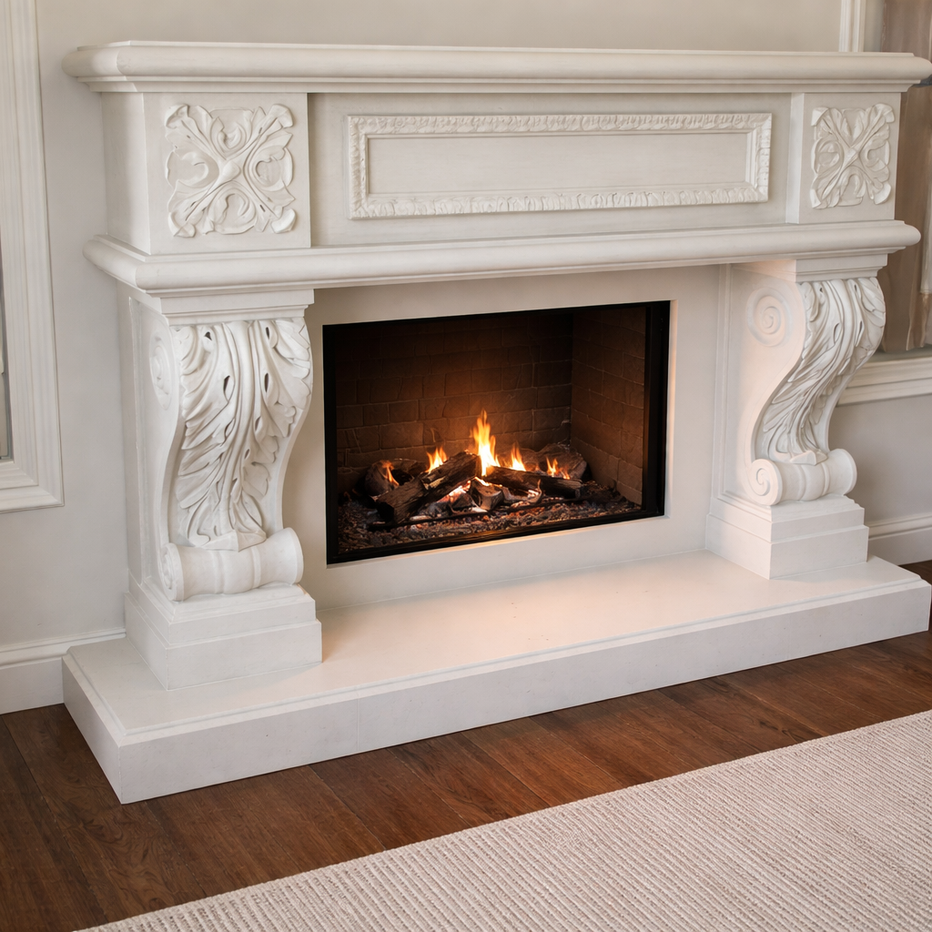 The Raphael Cast Stone Fireplace Mantel is a richly detailed, classically inspired design that reflects timeless European craftsmanship. With its elegant proportions and sculptural detailing, the Raphael serves as a striking focal point while maintaining a sense of balance and refinement.