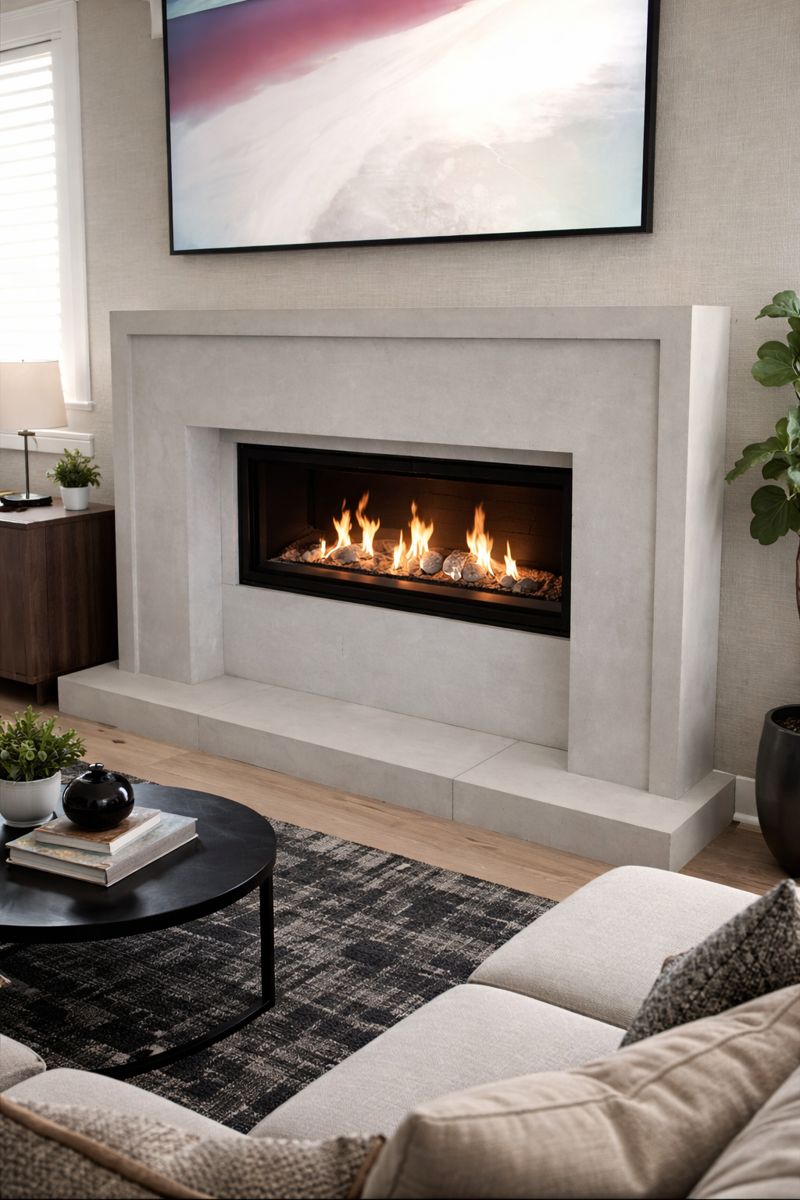 The Soho mantel is a refined, modern cast stone design featuring a clean rectangular frame with a subtle recessed border detail. Its crisp lines and balanced proportions create a sophisticated, minimalist look that feels both timeless and contemporary.